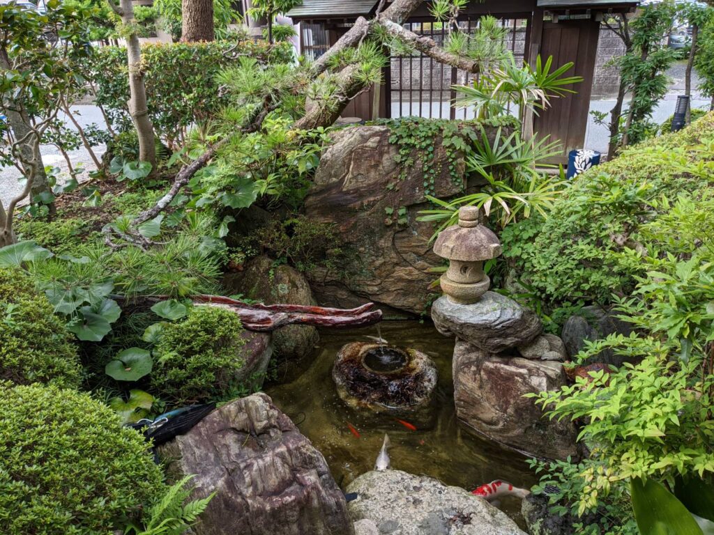 日本庭園の真ん中には池があり、錦鯉を見ることができます。