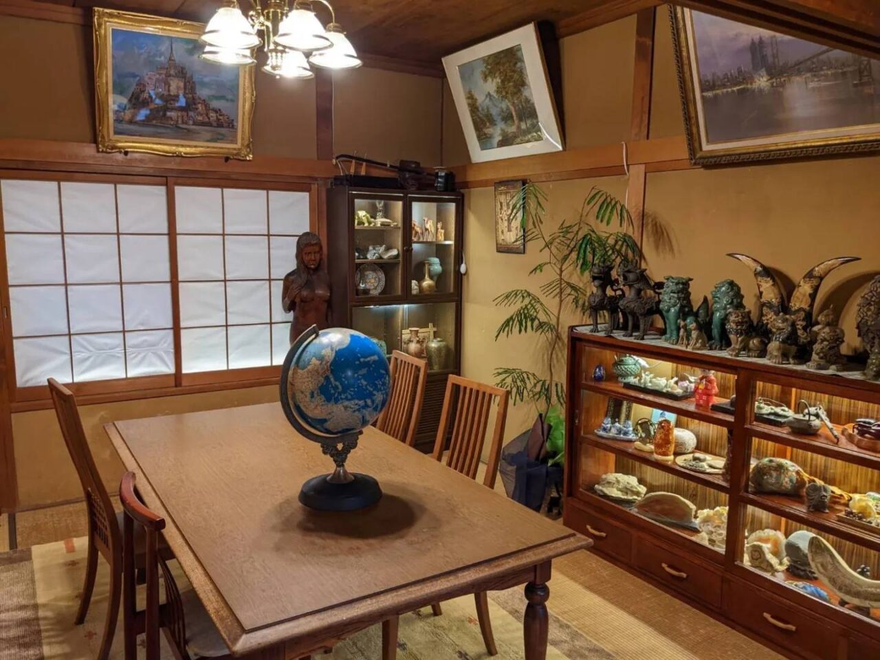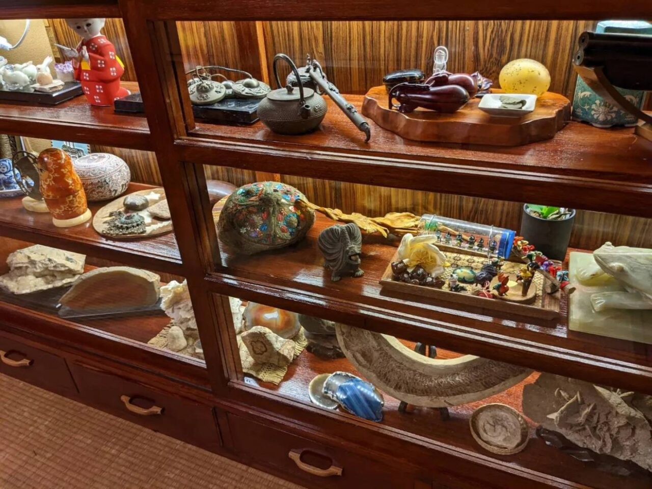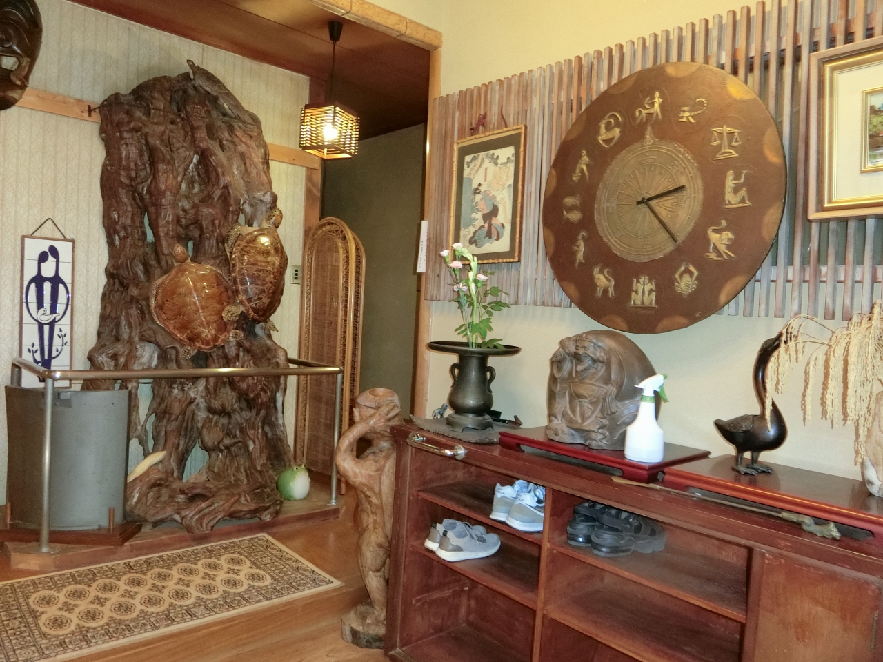 店内は畳敷きの和室や世界の民芸品、工芸品が飾られた部屋。